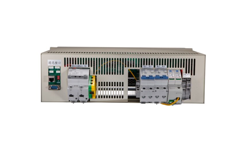 ERPS-L-5000 is a DC input remote power supply system. The system consists of four parts: system frame, power module, monitoring module, and output lightning protection module. The output voltage is adjustable from 250V to 380V. The maximum output power of a single rectifier module can reach 1000W. The power module itself has current sharing. A single system can be configured with up to 5 rectifier modules. Systems can be paralleled and expanded. An optional input Hall current sampling module can be used to realize power metering function.