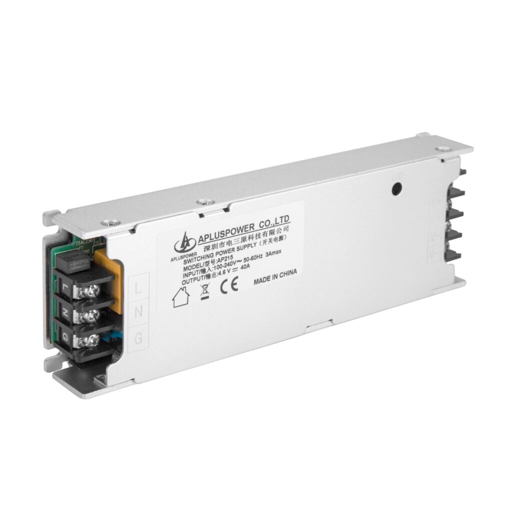 The AP298 power module supports a wide input voltage range of 90-264Vac, outputs 4.6V/40A DC power supply, そして、より多くの変換効率を持っています 90%. The product width is only 30mm, and the extremely compact design meets the strict requirements of modern display devices for volume and space. Built-in high-efficiency EMI filter effectively suppresses electromagnetic interference and ensures low output ripple and low noise. The product also has output overcurrent, short circuit and overvoltage protection to ensure safe and reliable system operation. AP298 has passed TUV-CE and ETL international certifications, and its quality is guaranteed.